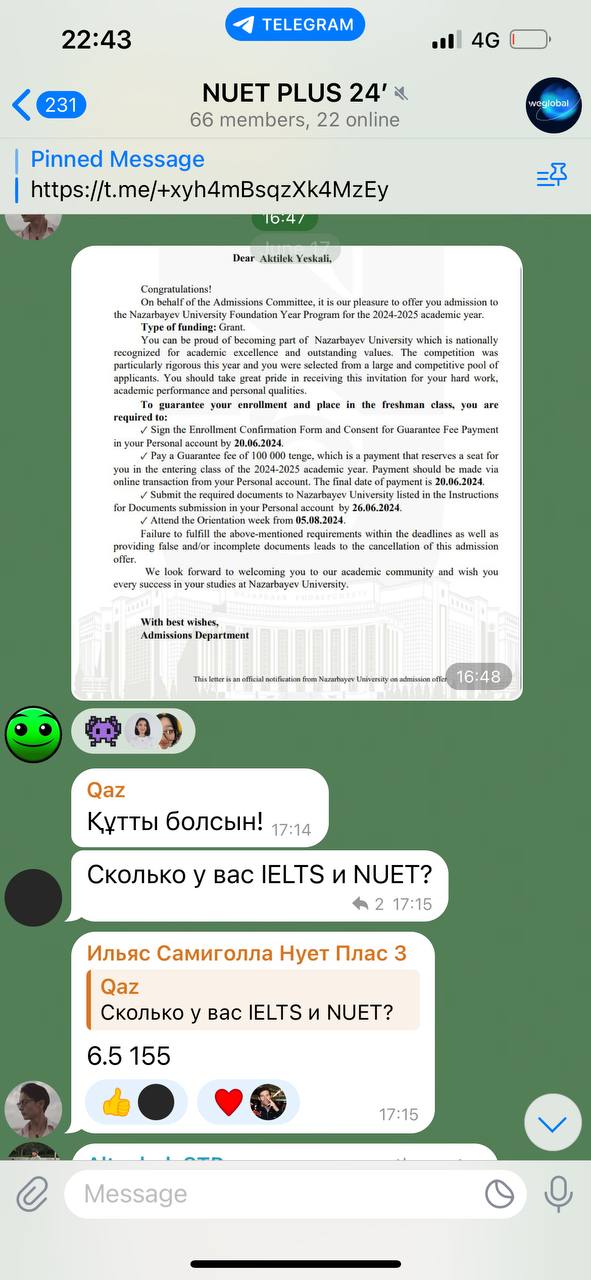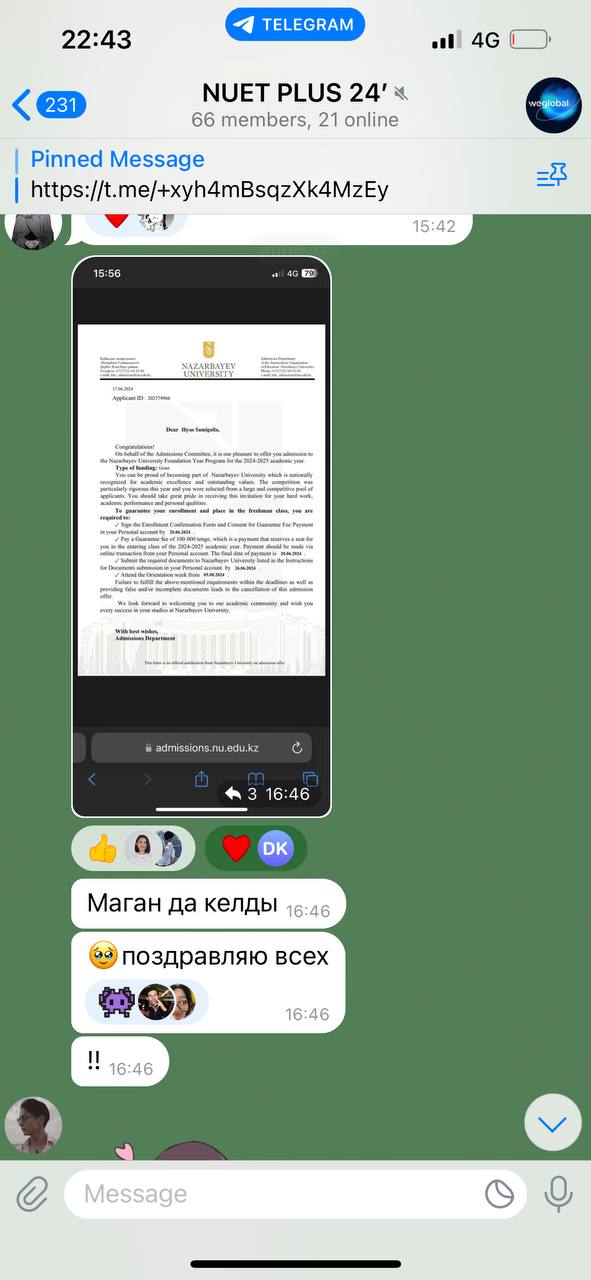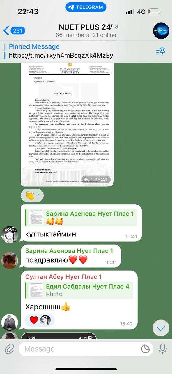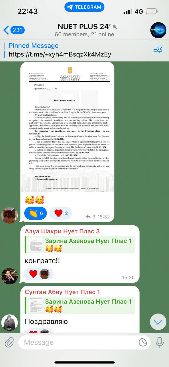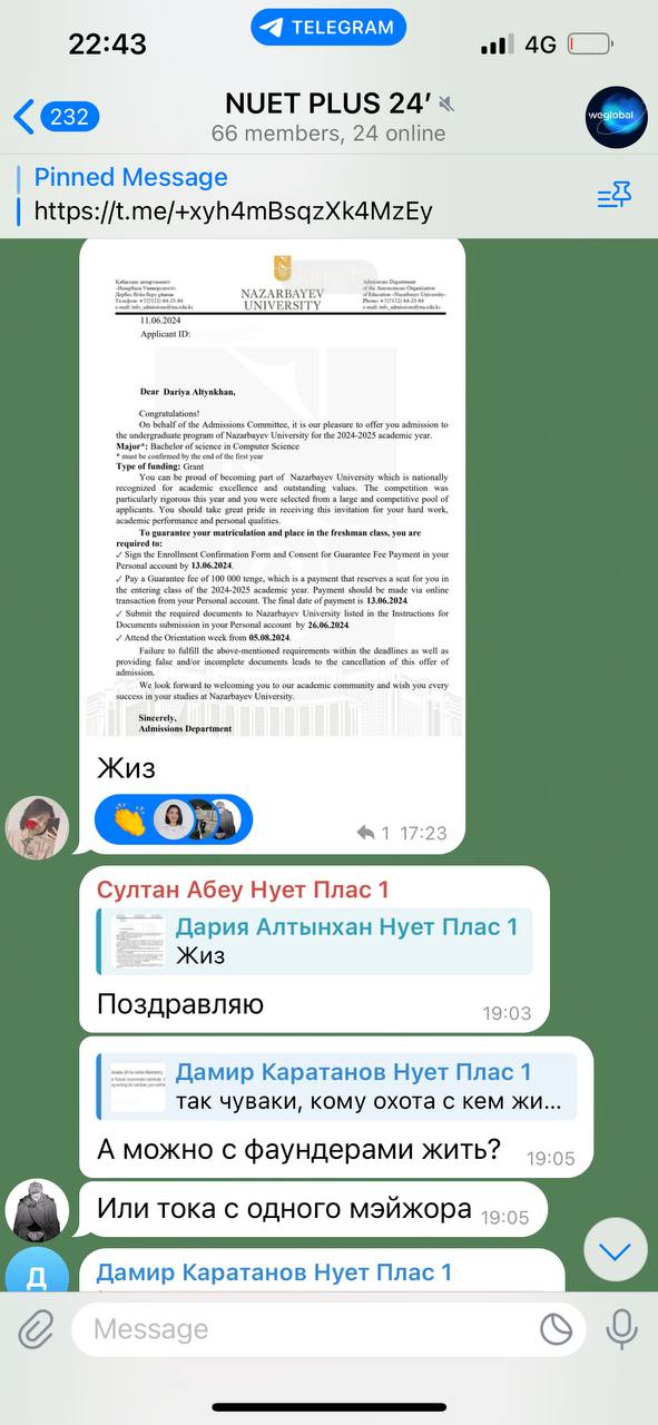 Выпускник КТЛ, студент Назарбаев Университета по специальности “electrical and computer engineering” , получил 186 баллов по экзамену НУЕТ, поступил на магистратуру в один из топовых университетов мира - Cornell University в, который состоит в лиге плюща.