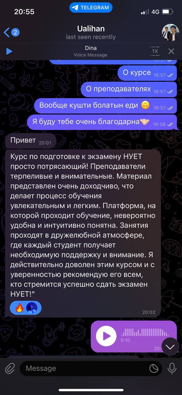 Выпускница НИШ ФМН г. Алматы, студентка Назарбаев Университета по специальности computer science, +60 учеников с успешными результатами, опыт работы 4 года.
